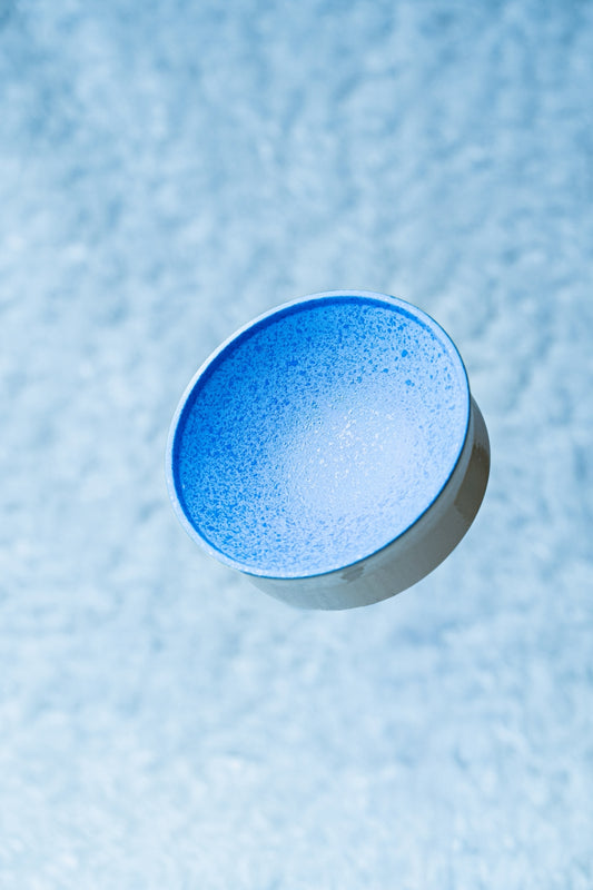 ユニークな形はお料理の幅を広げ、色んなジャンルにお使いいただけ、落ち着きのある爽やかな青の器には食材が美しく映えます。その風合いは鉱物と1300℃の窯の中での変化で成形され、一つとない表情、景色として表現されています。