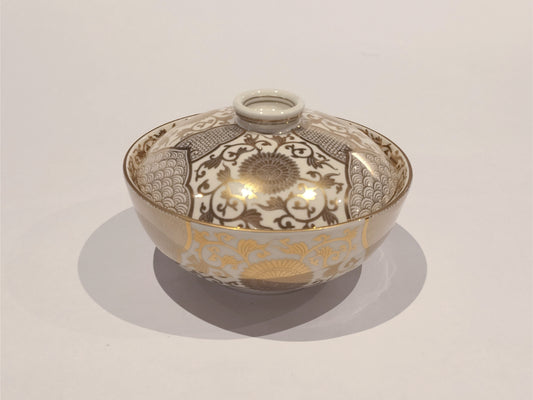 【旅皿】エンペラー(クリーム釉金彩菊華紋 4寸蓋物)