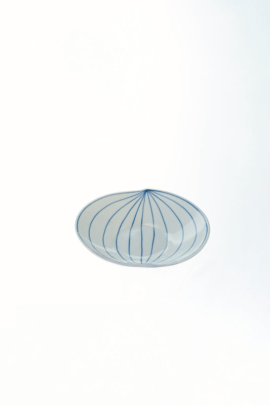 真っ白な磁器に、藍色の絵具で一枚ずつ丁寧に描かれた模様が印象的なプレート。葉をかたどった柔らかなフォルムは、盛り付ける料理に自然な動きを生み出し、テーブルに軽やかな表情を添えます。光を受けて淡く透ける白磁と藍のコントラストが美しく、和洋を問わず幅広い料理に調和。デザートやサラダ、小さなメイン皿としても活躍します。手描きならではの揺らぎが、使うたびに心を和ませる器です。