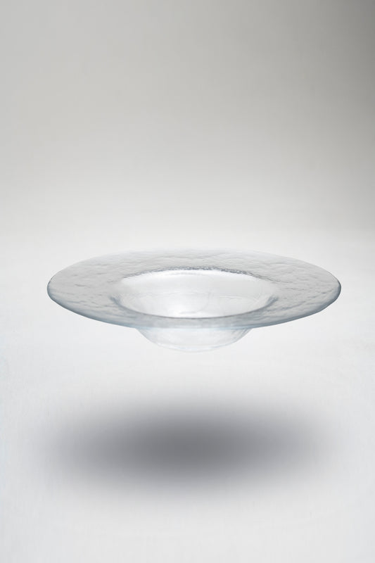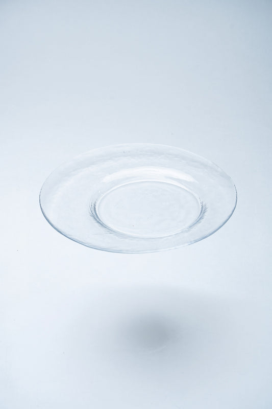 ハンドメイドならではのやわらかな風合いが魅力のガラス製カフェトレー。透明なガラスの中に光がやさしく差し込み、料理やスイーツ、ドリンクを美しく引き立てます。リムの幅に変化をつけたデザインが軽やかなリズムを生み、シンプルながらも個性のある一枚に。おもてなしのシーンはもちろん、日常のティータイムにも華やかさを添えます。