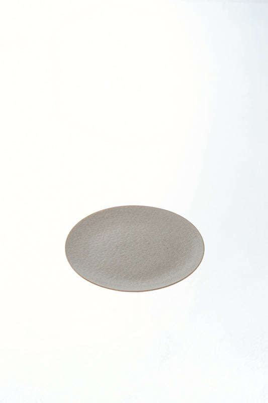 やわらかなグレージュの色合いと、マットな質感が魅力のプレート。光を穏やかに受ける表面は、落ち着きのある表情を見せながら、料理の色や質感を美しく引き立てます。主張しすぎない上品なトーンは、和洋問わずどんなテーブルにも馴染み、日常使いにもおもてなしの席にも活躍。18cmという扱いやすいサイズ感で、メインの取り皿やデザートプレートにも最適です。静かに佇みながら、食卓に温かみと洗練を添える一枚です。