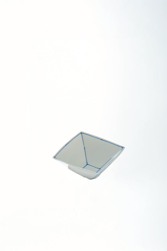 白磁に伸びる藍色のラインが凛と映えるスクエアボウル。四角いフォルムの中にやわらかさを感じさせる手描きの線が、眞窯らしい上品な温もりを表現しています。副菜やサラダ、デザートにも使いやすいサイズで、深さのある形が料理を立体的に引き立てます。シンプルで洗練されたデザインは、重ね使いしても美しく、日常の食卓に爽やかな彩りをもたらします。