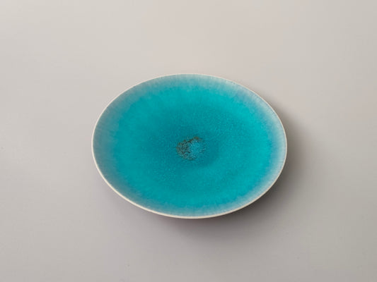 澄んだ青が柔らかに広がる5寸皿。小ぶりながらも釉薬の流れや深みが豊かに自然の美しさが凝縮されています。副菜やデザート、小菓子を乗せても映え、テーブルにさりげない爽やかさを添える存在。7.5寸皿と組み合わせれば、統一感のあるコーディネートに。鮮やかな青のグラデーションが、穏やかな時間を美しく彩ります。