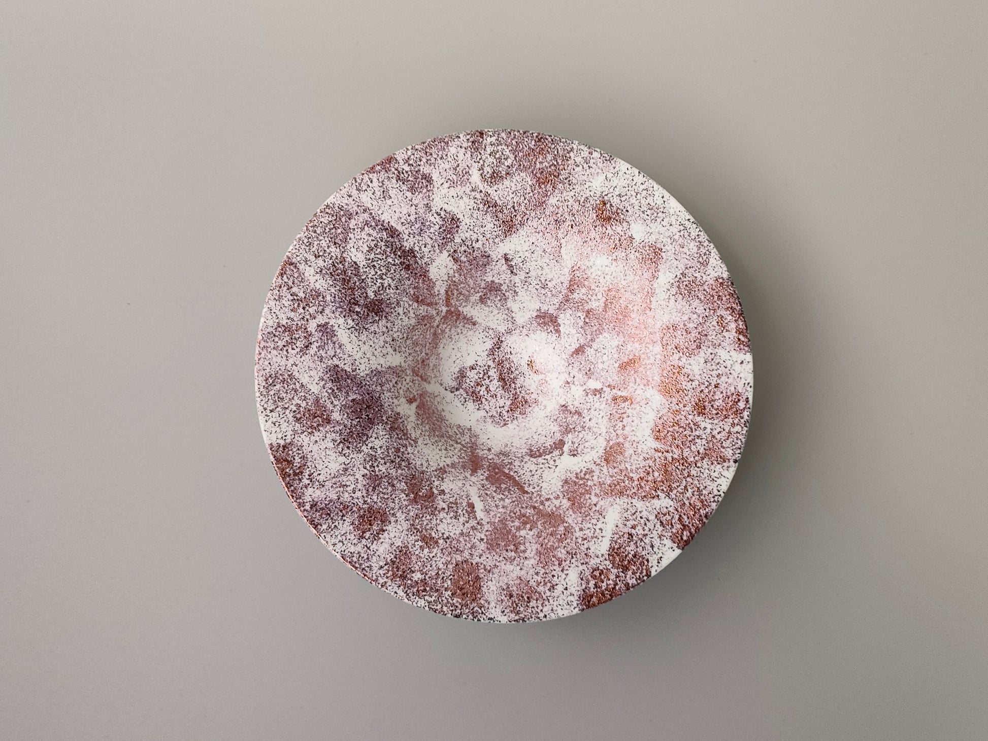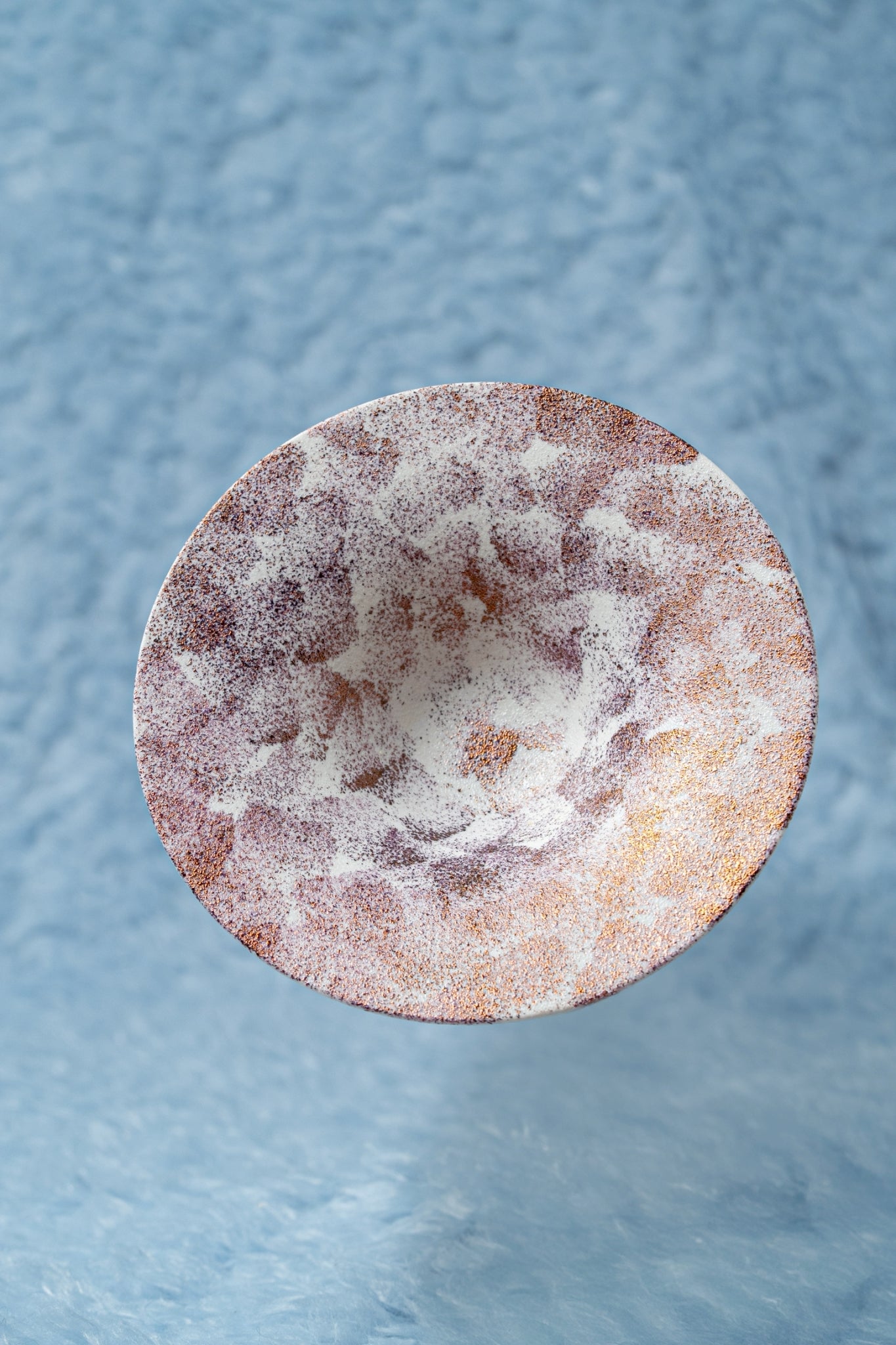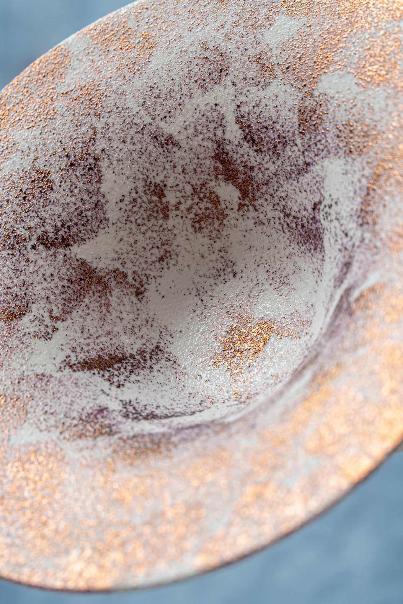 雪の様な質感と銅の成分を用いた華やかな器です。見る角度や照明によっても変化が楽しめます。
