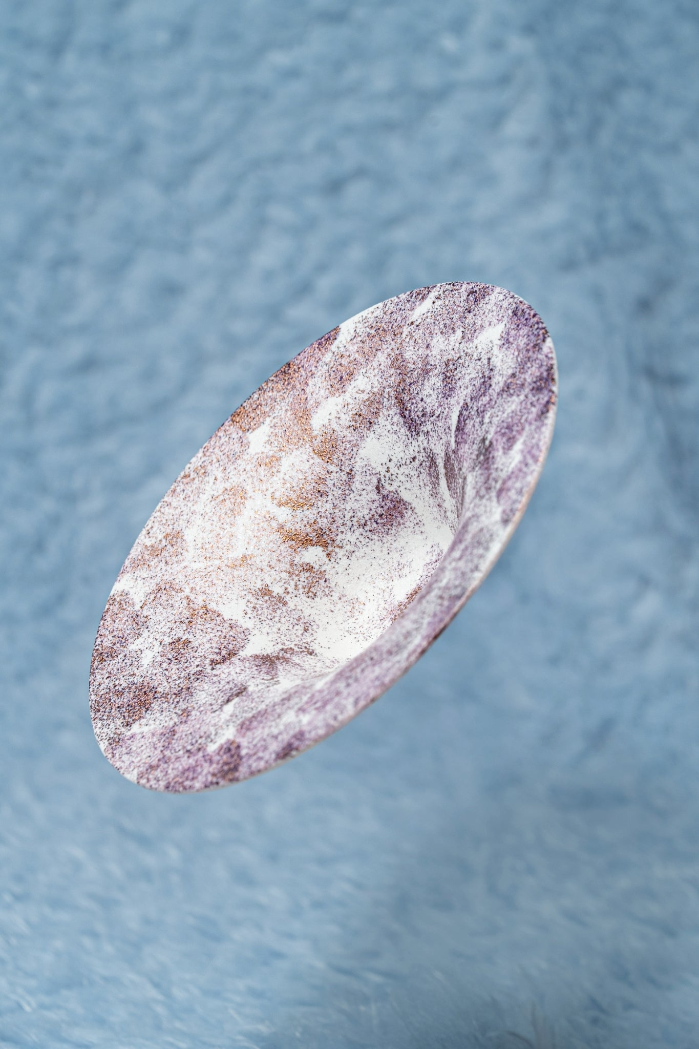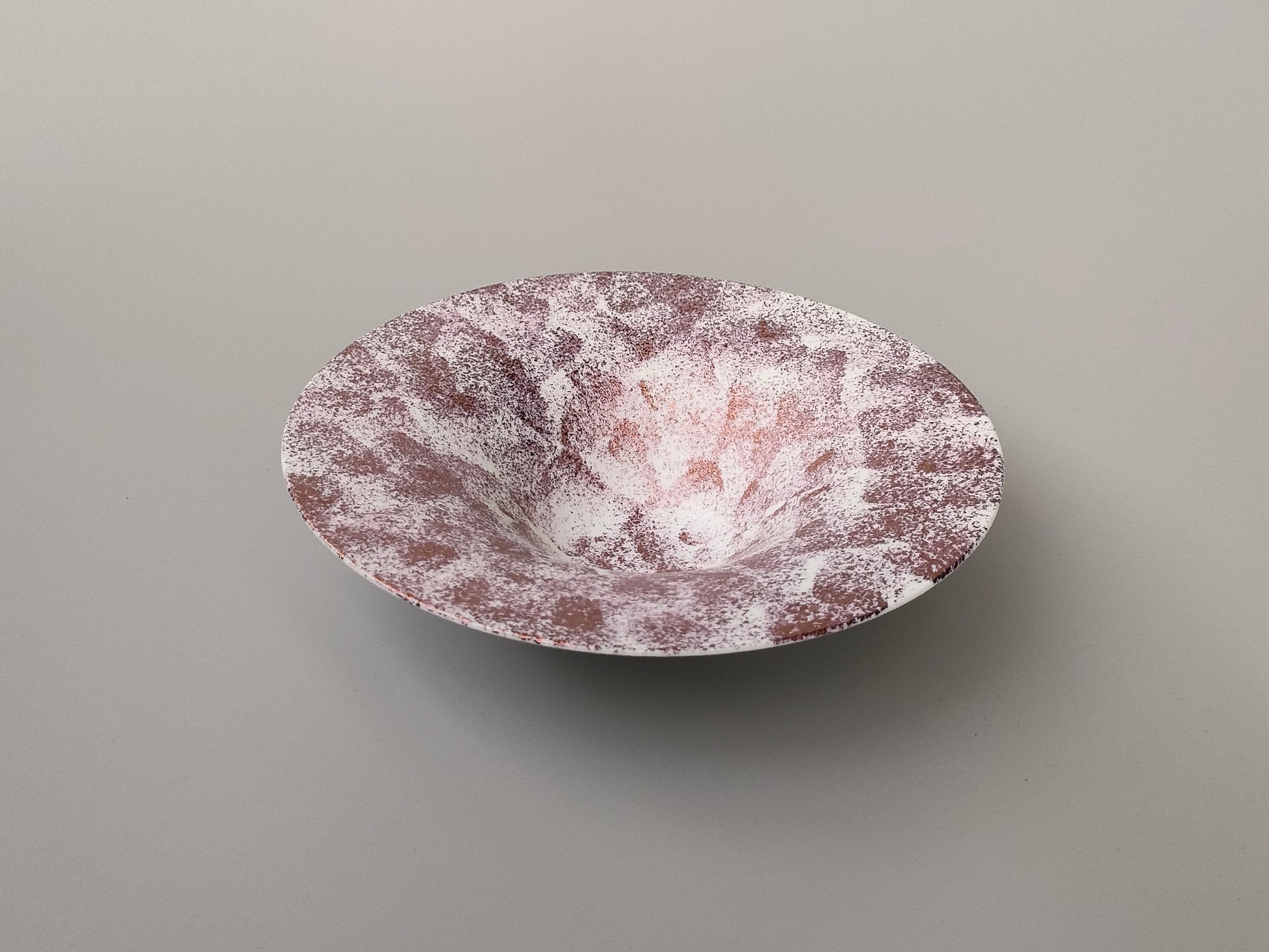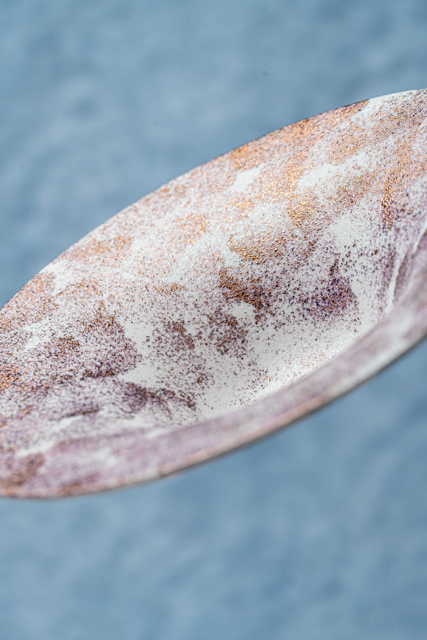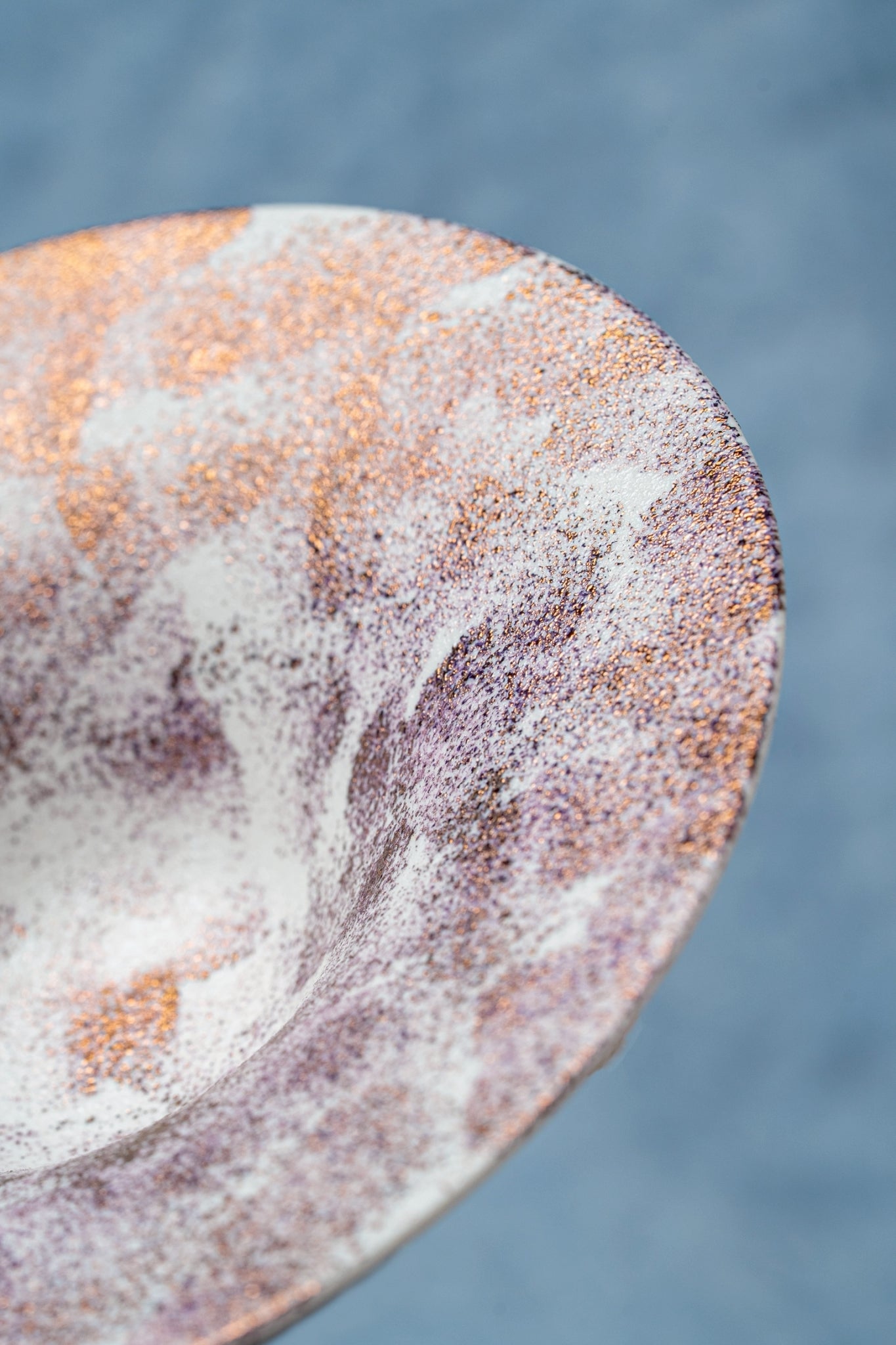 雪の様な質感と銅の成分を用いた華やかな器です。見る角度や照明によっても変化が楽しめます。