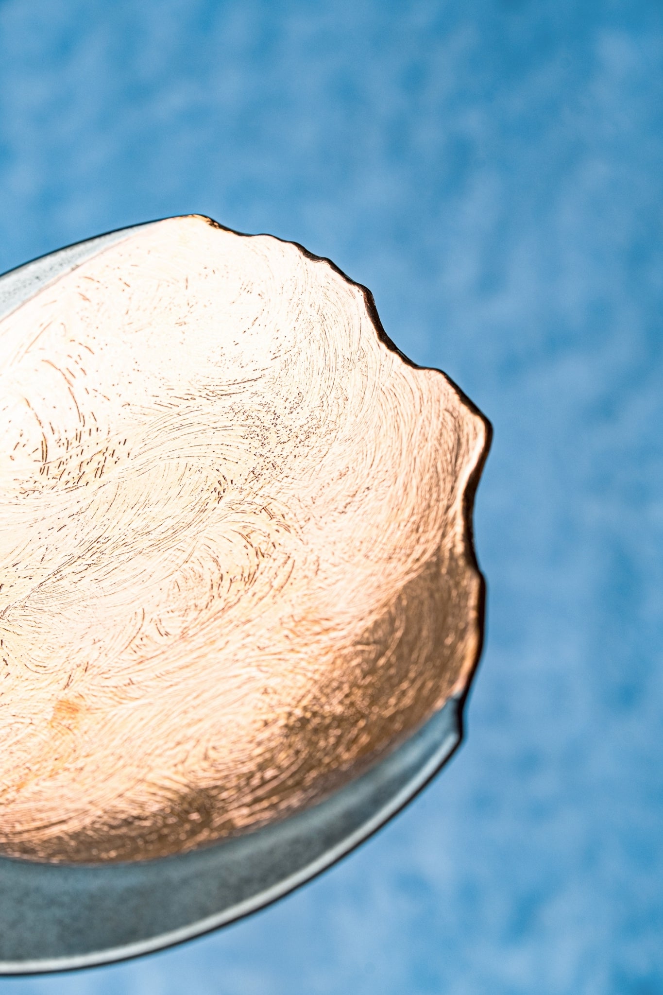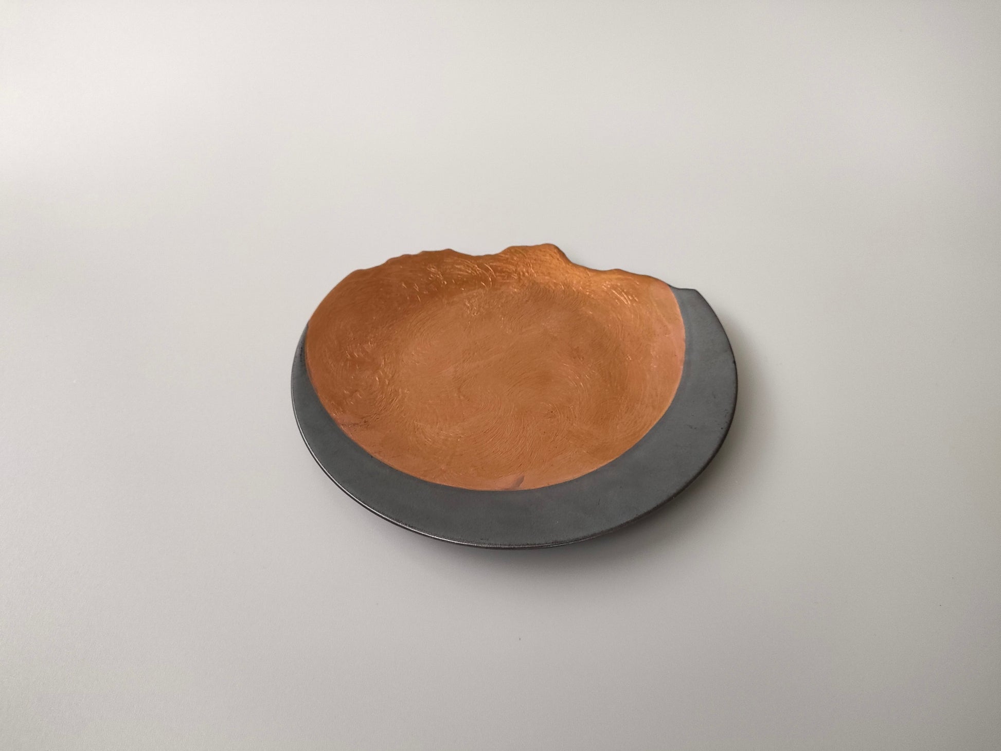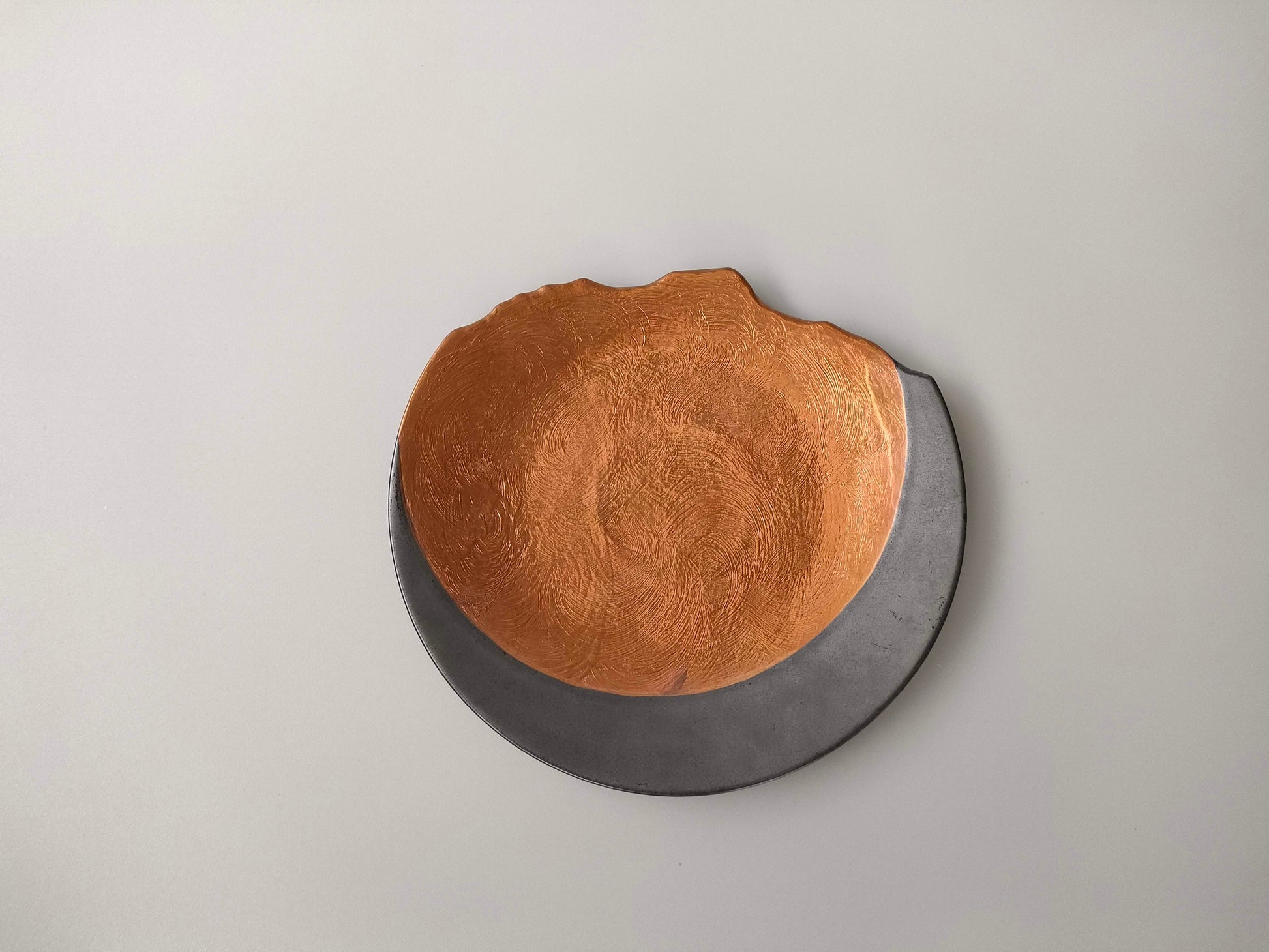自然な形と金銀の加飾を用いて月の満ち欠けを表現しており、情緒深さと華やかさを兼ね備えた器です。