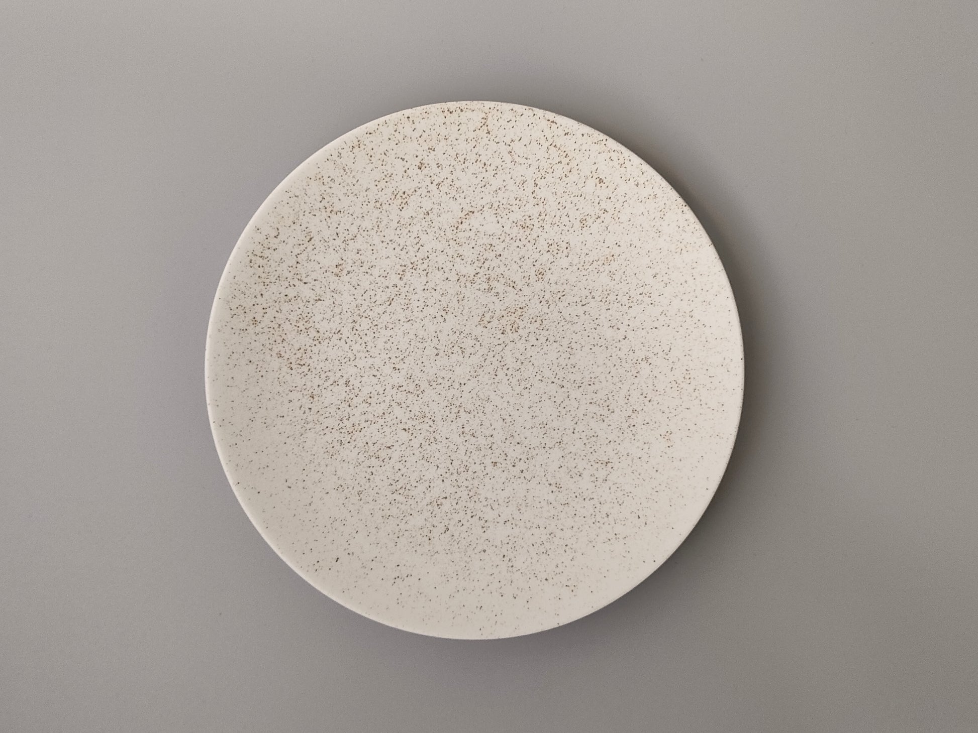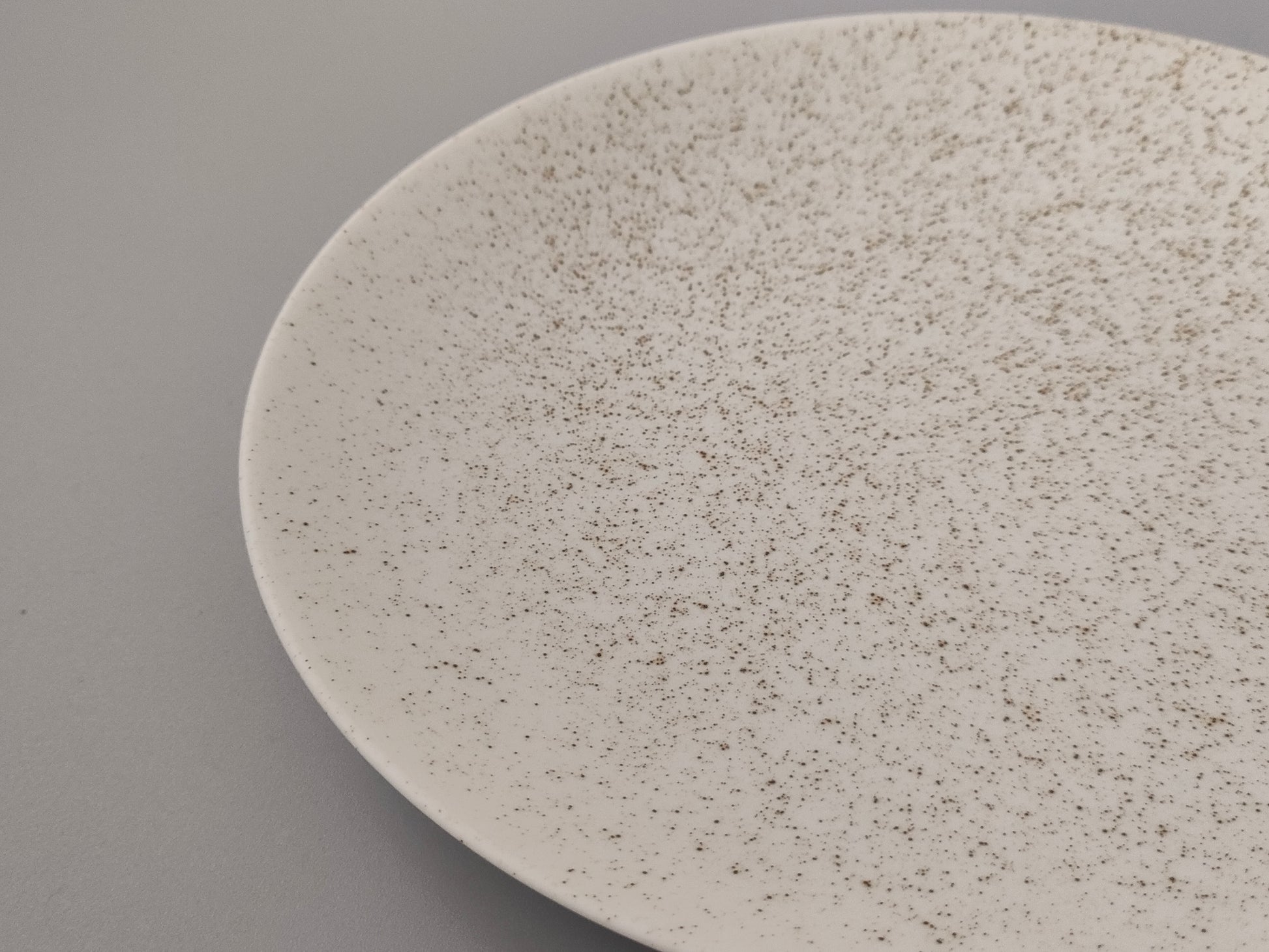 黒の点々は鉄粉を釉薬に混ぜ込み、「梨地」という果物の梨の表面に似た質感です。どんなお料理にも合う使い勝手の良い器です。