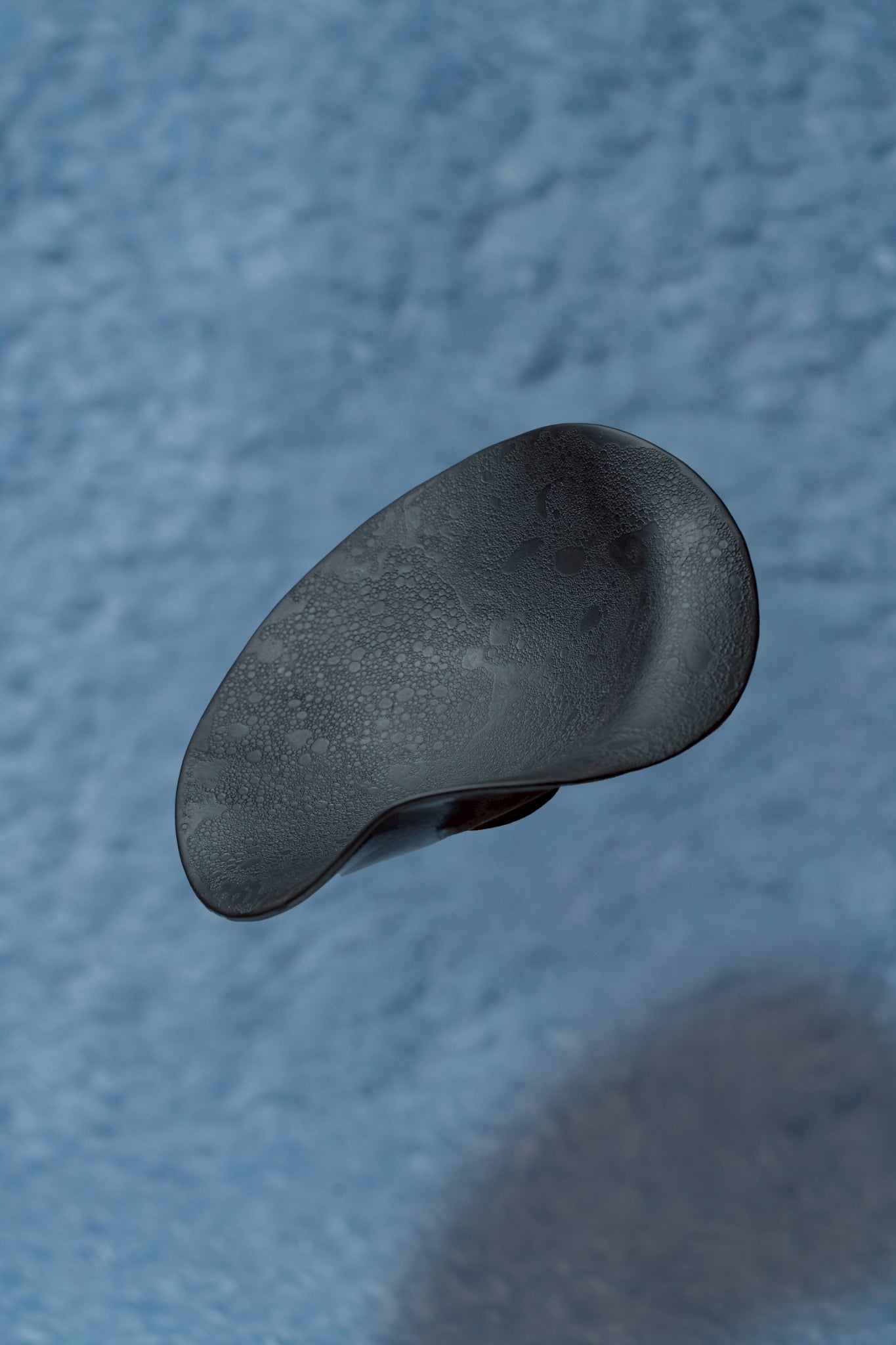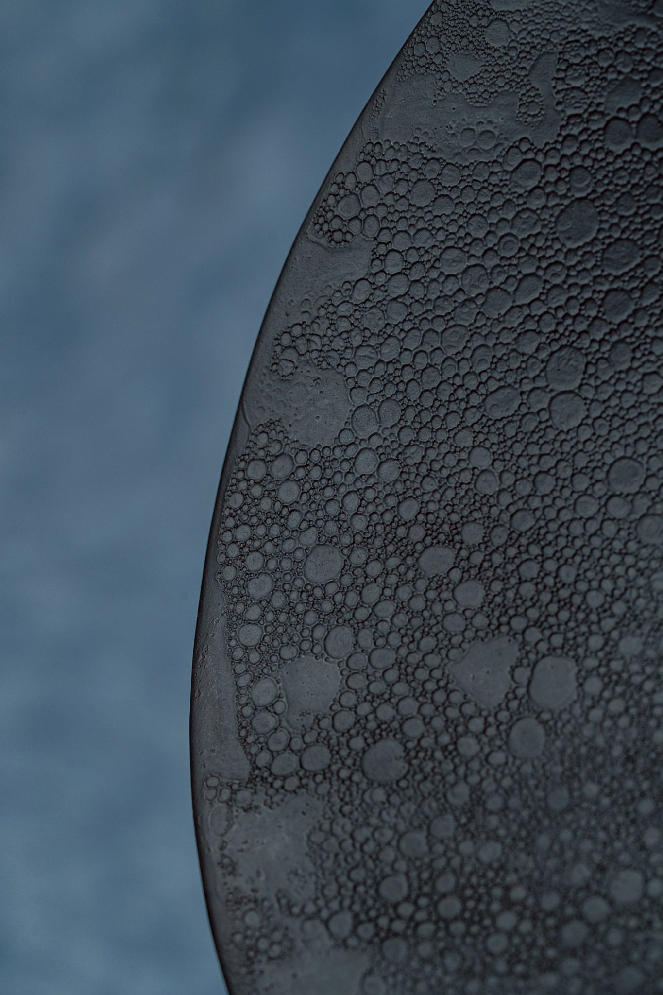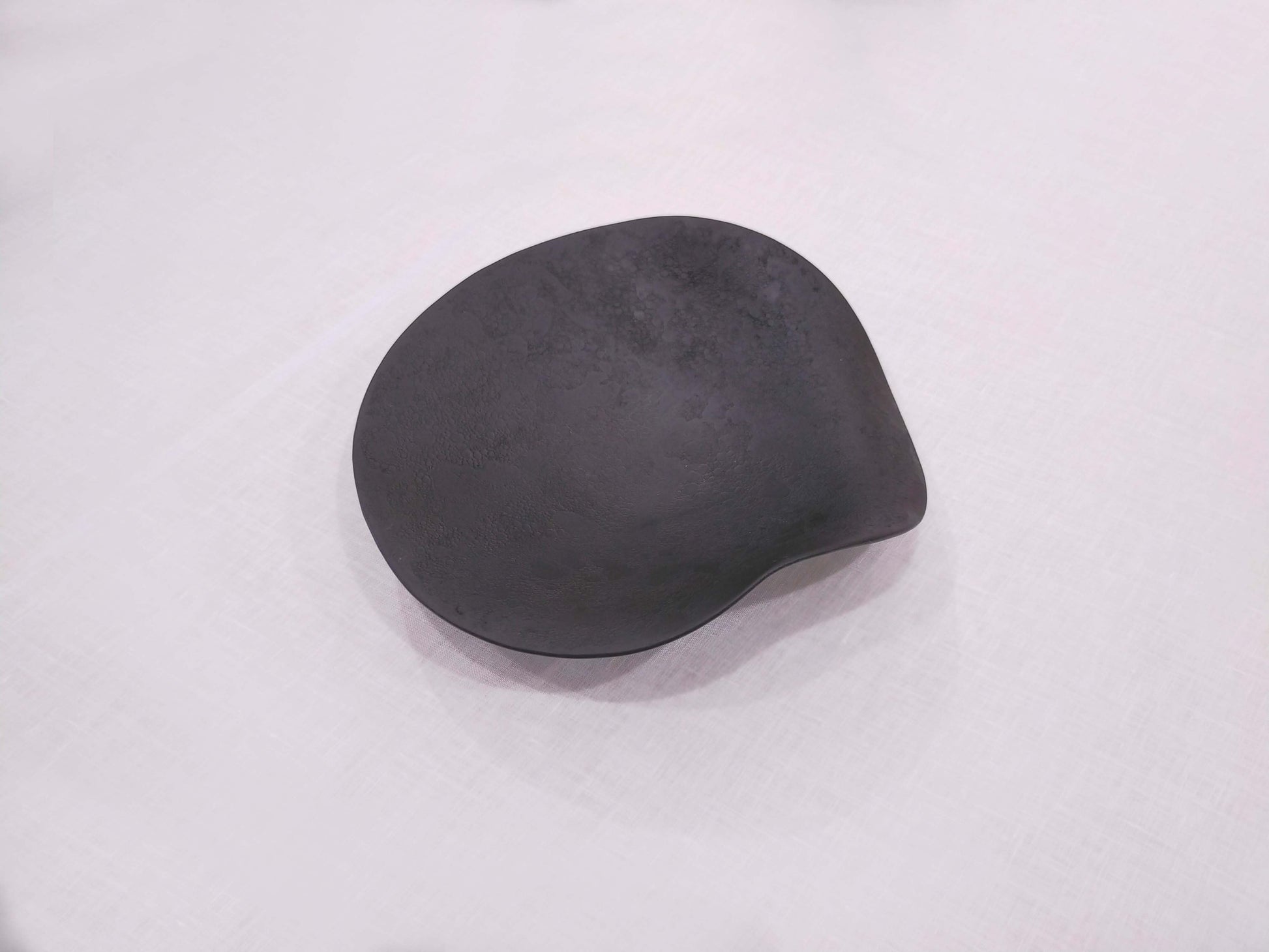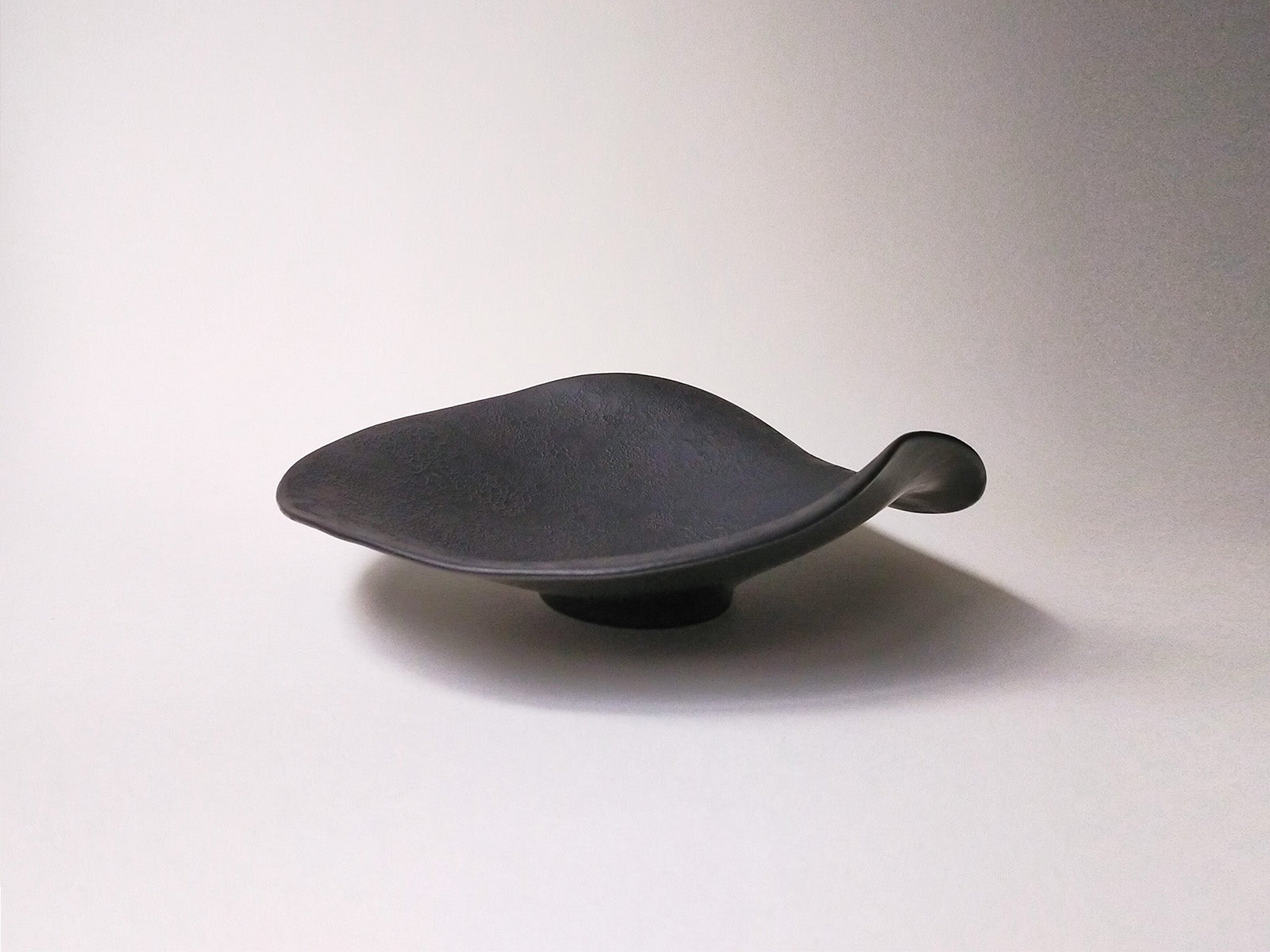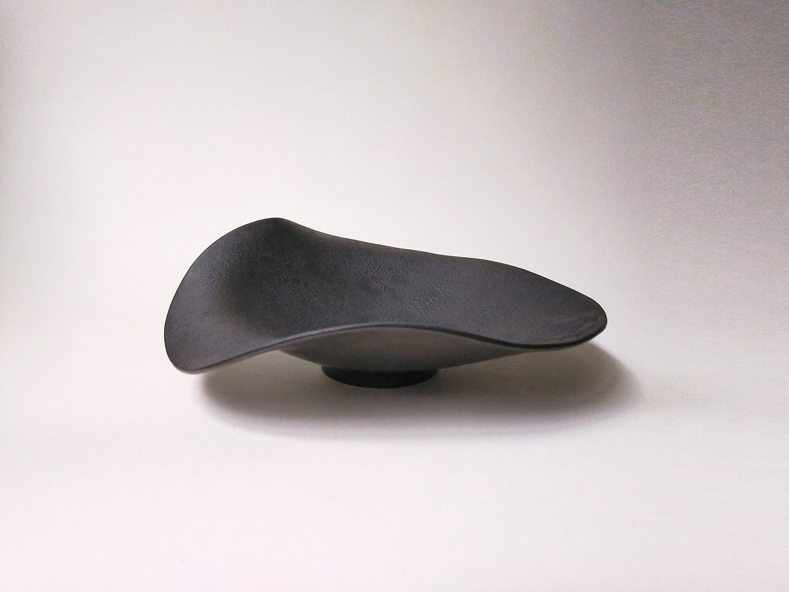 陶磁器とは思えない滑らかにカーブした形状に、泡がついたように模様がつけられた鉢。マット釉薬での表現がモダンな器です。