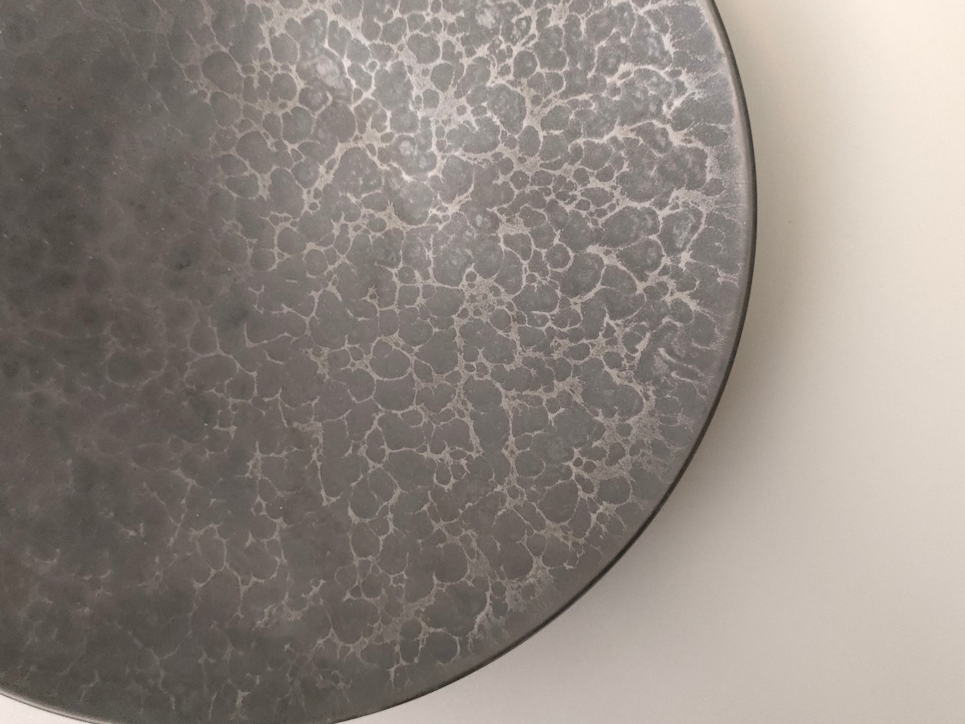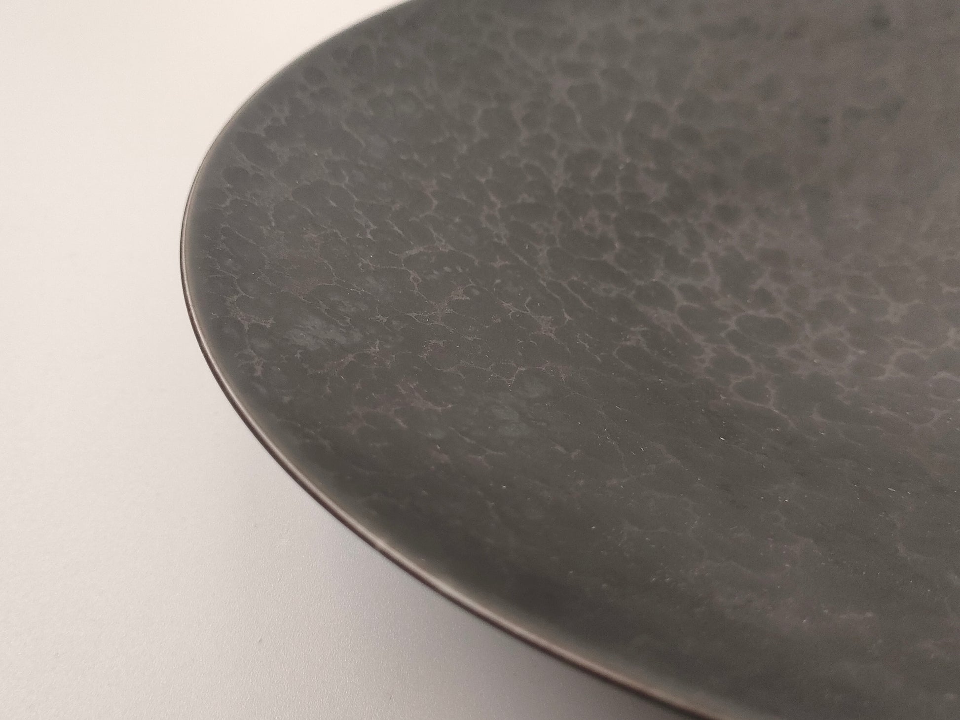 無機質な素材感が醸し出すシックな器。鉱物と1300℃の窯の中での変化で成形され、その風合いは一つとない表情、景色として表現されています。和食・洋食多くのジャンルのお料理にお使いいただけます。前菜を始めお肉やお魚料理にお使いください。