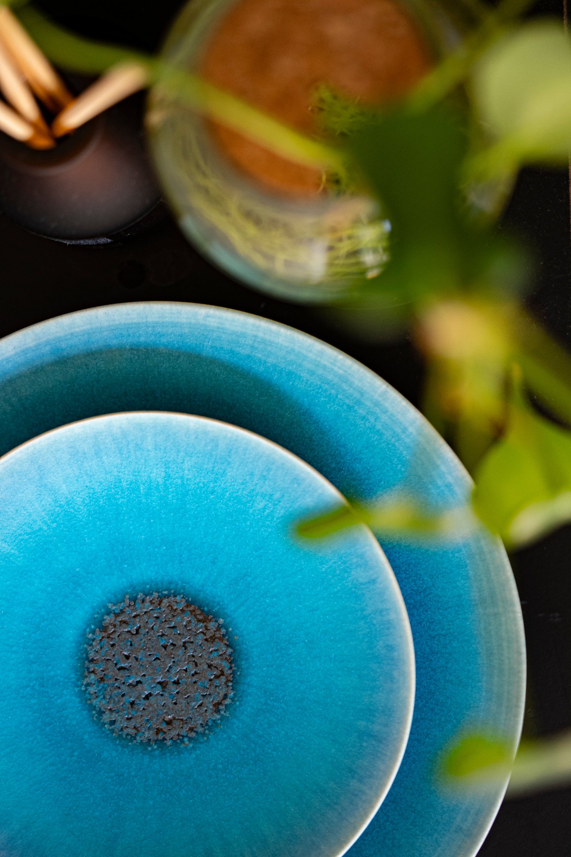 渕から中心へと移ろう青の濃淡が美しく、まるで水面に光が差し込む瞬間を閉じ込めたような一枚。釉薬が自然に流れ、中央に生まれる深みのある釉薬が存在感を放ちます。鮮やかさと透明感を兼ね備えた青が、料理の彩りを一層際立たせ、和洋問わず上品に調和。メイン皿として食卓を爽やかに引き締め、見るたびに心を潤すような美しさを添えます。