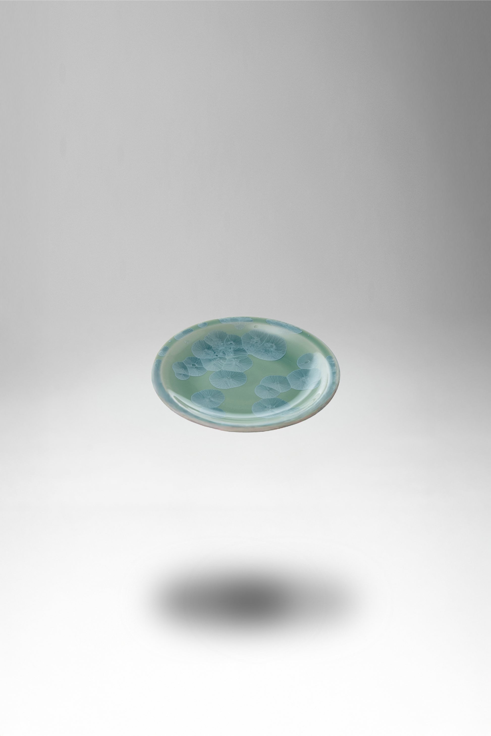 光の加減で淡く輝く、花びらのような結晶模様が美しい「花結晶」シリーズ。釉薬の中で自然に生まれる結晶が一枚ごとに異なる表情を見せ、同じ色でもふたつとして同じ景色はありません。やわらかな透明感と上品な艶が、料理や菓子をやさしく包み込み、日常の食卓を華やかに彩ります。京焼・清水焼ならではの繊細な感性が息づく、凛とした美しさをもつ器です。