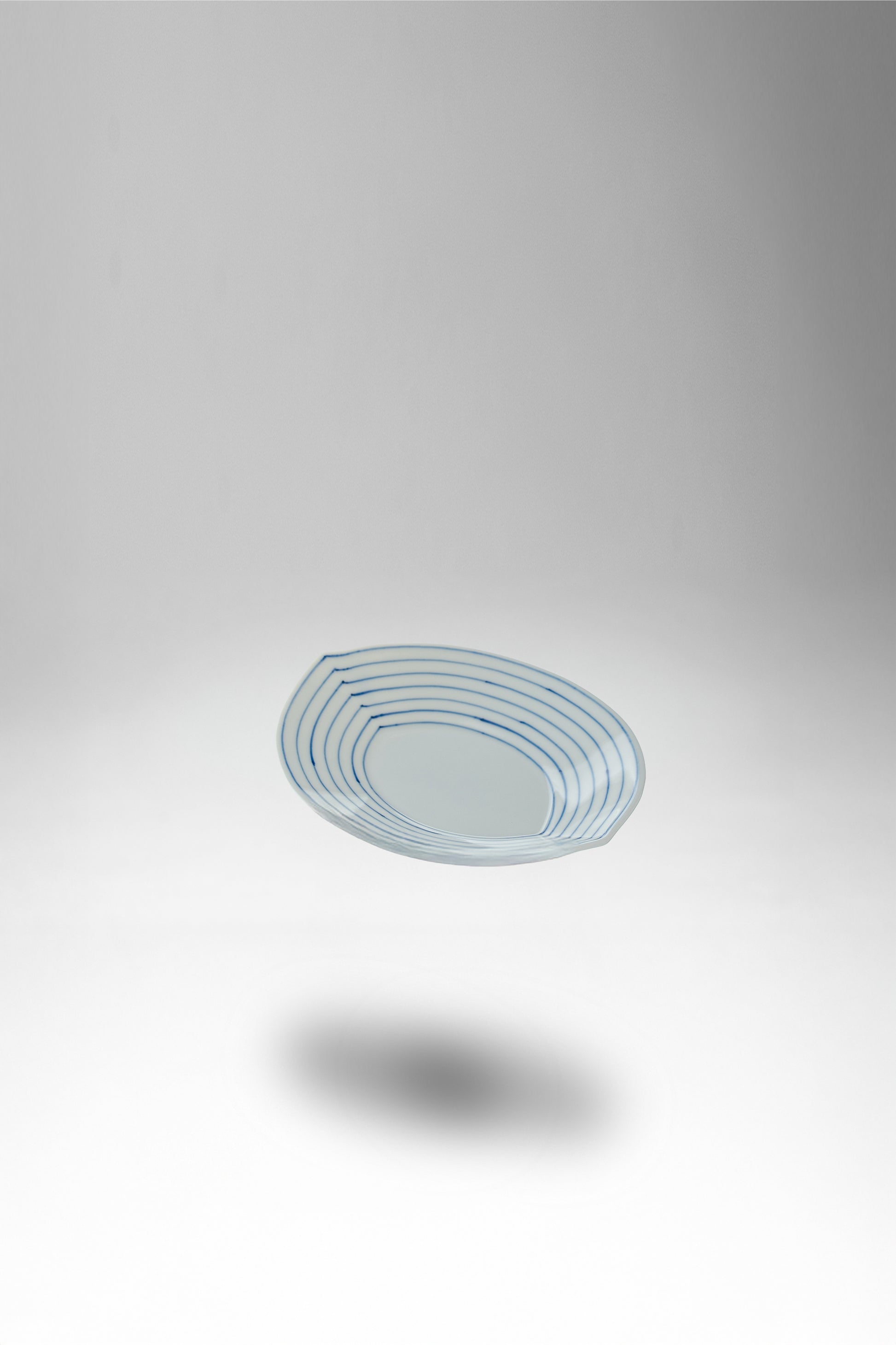 真っ白な磁器に、藍色の絵具で一枚ずつ丁寧に描かれた模様が印象的なプレート。葉をかたどった柔らかなフォルムは、盛り付ける料理に自然な動きを生み出し、テーブルに軽やかな表情を添えます。光を受けて淡く透ける白磁と藍のコントラストが美しく、和洋を問わず幅広い料理に調和。デザートやサラダ、小さなメイン皿としても活躍します。手描きならではの揺らぎが、使うたびに心を和ませる器です。