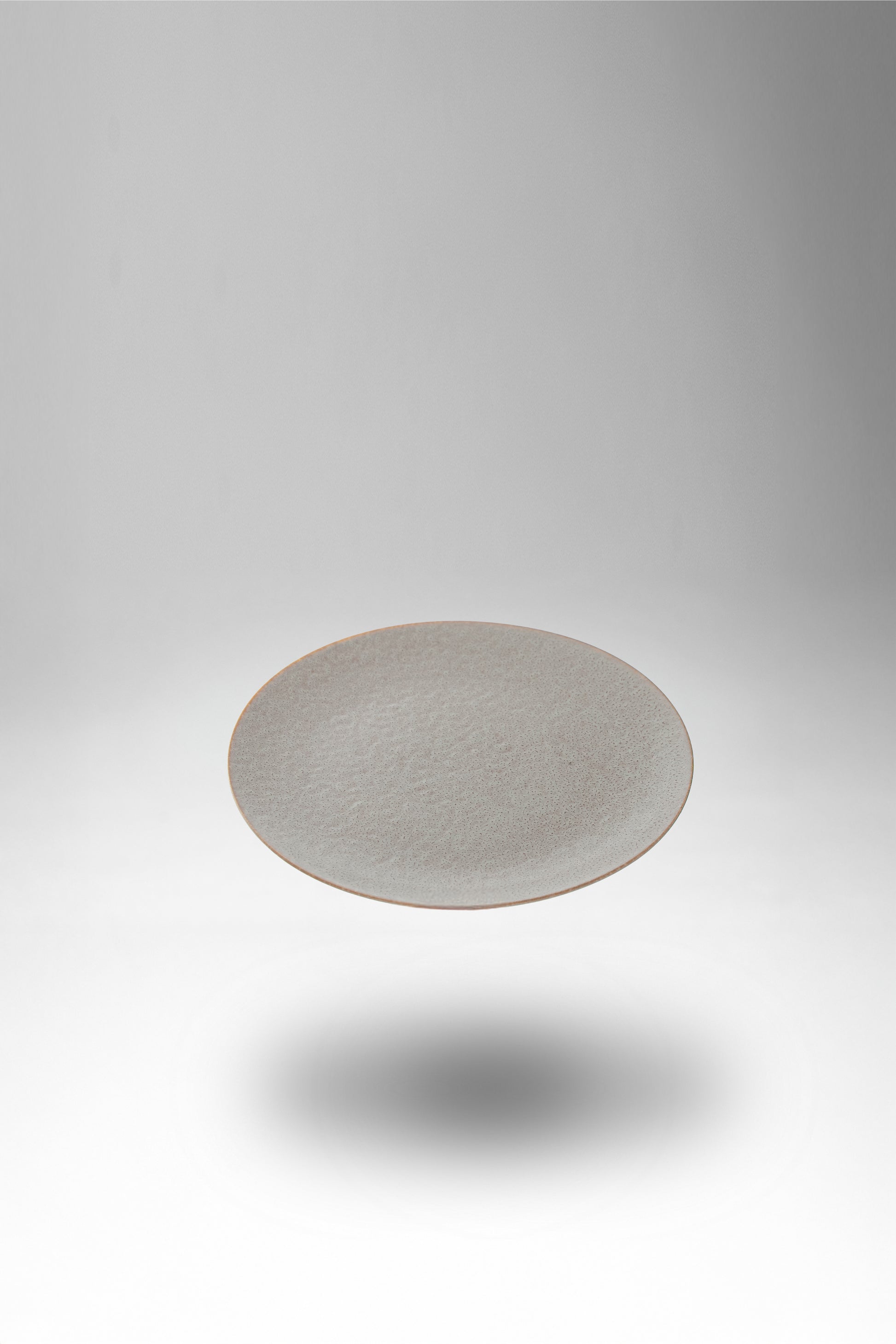 やわらかなグレージュの色合いと、マットな質感が魅力のプレート。光を穏やかに受ける表面は、落ち着きのある表情を見せながら、料理の色や質感を美しく引き立てます。主張しすぎない上品なトーンは、和洋問わずどんなテーブルにも馴染み、日常使いにもおもてなしの席にも活躍。18cmという扱いやすいサイズ感で、メインの取り皿やデザートプレートにも最適です。静かに佇みながら、食卓に温かみと洗練を添える一枚です。