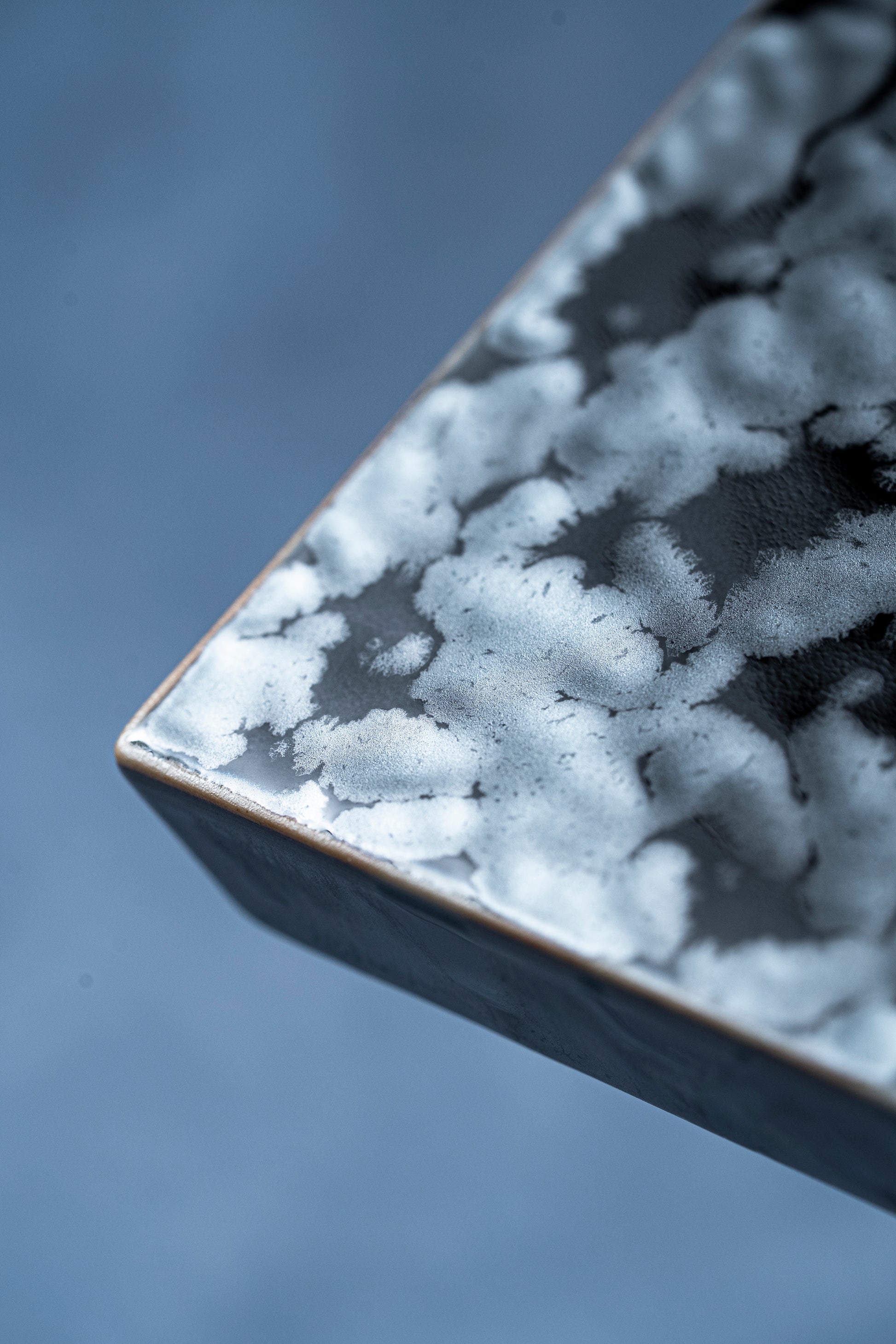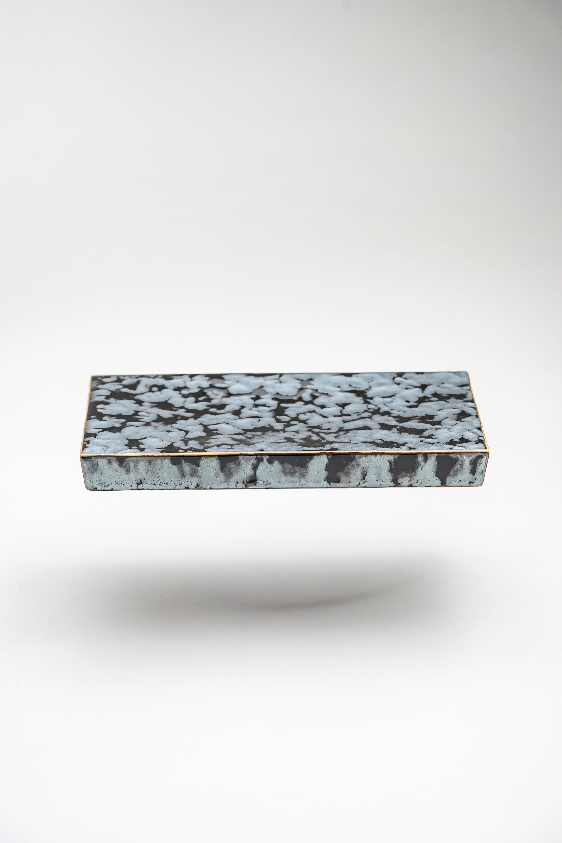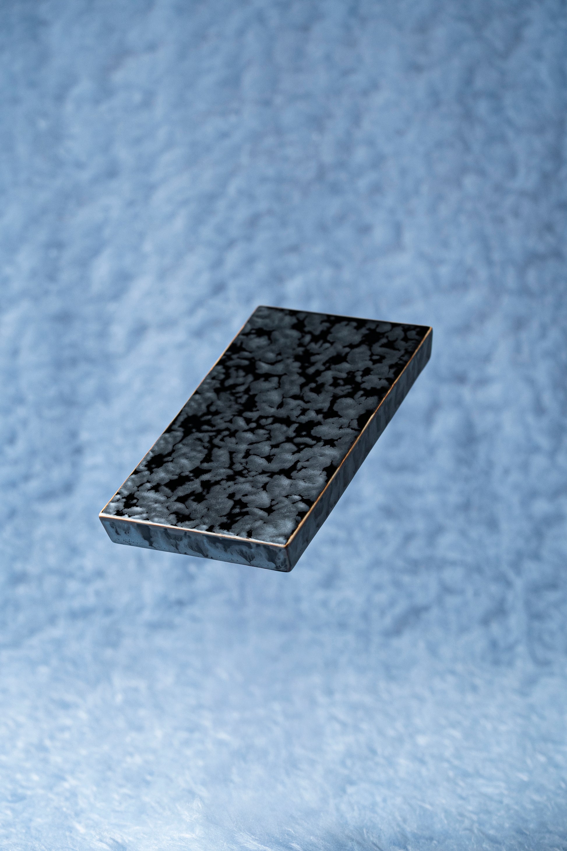 無機質な素材感が醸し出すシックな器。鉱物と1300℃の窯の中での変化で成形され、その風合いは一つとない表情、景色として表現されています。和食・洋食多くのジャンルのお料理にお使いいただけます。お寿司の台皿や洋食の前菜やデザートにお使いください。